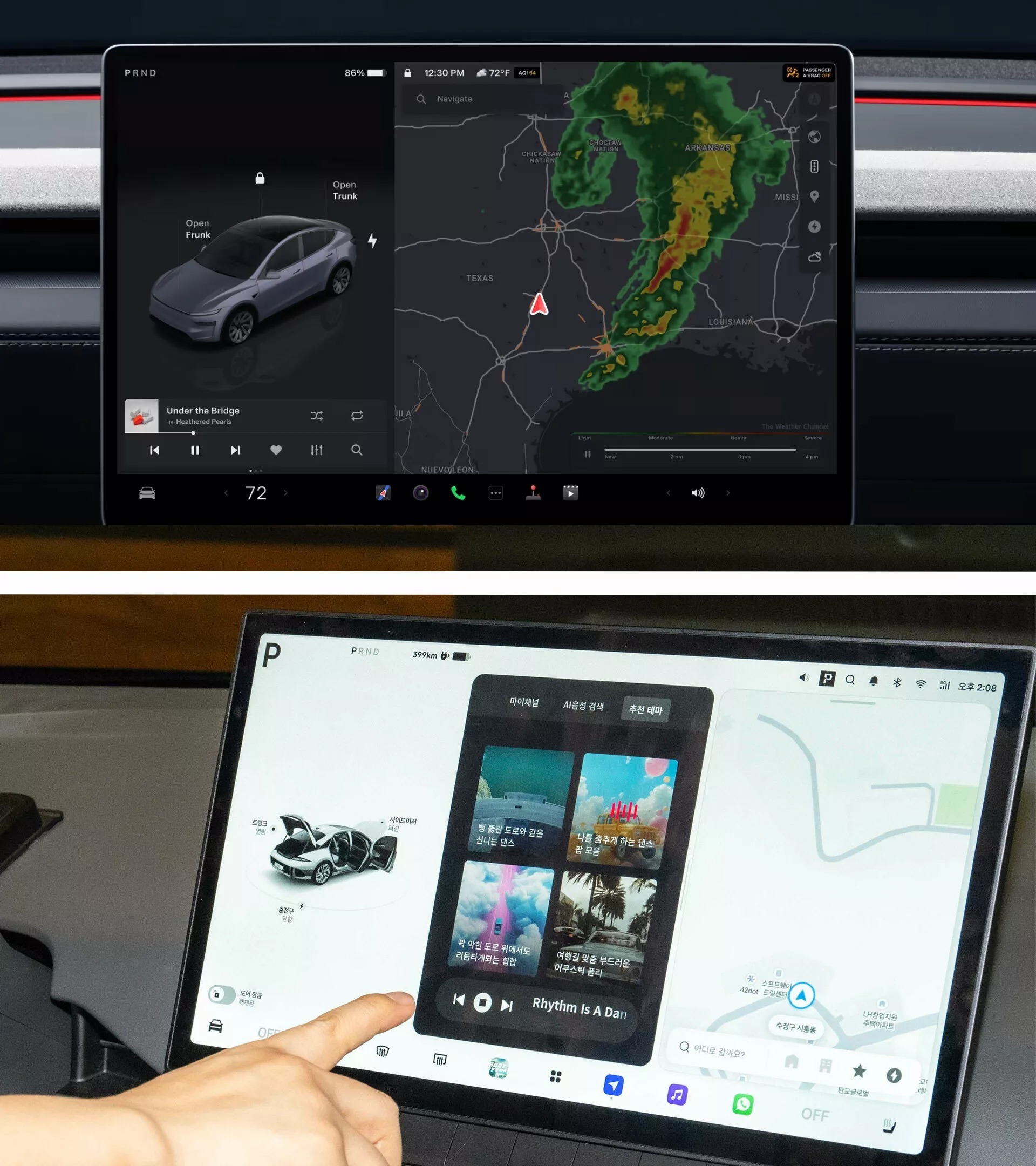 Đồ họa đi kèm màn hình khá gọn gàng và trực quan nhưng dễ bị so sánh với Tesla vì thiết kế tương đồng - Ảnh: Hyundai